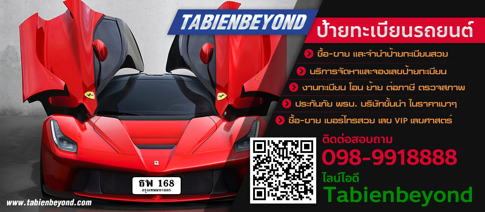 บริการ ซื้อ-ขาย และจำนำป้ายทะเบียนสวย บริการจัดหาและจองเลขป้ายทะเบียนรถยนต์ รถตู้ รถกระบะ มอเตอร์ไซค์ งานทะเบียน โอน ย้าย ต่อภาษี ตรวจสภาพรถ ประกันภัย พรบ. บริษัทชั้นนำ ในราคาเบาๆ ซื้อ-ขาย เบอร์โทรสวย เลข VIP เลขศาสตร์